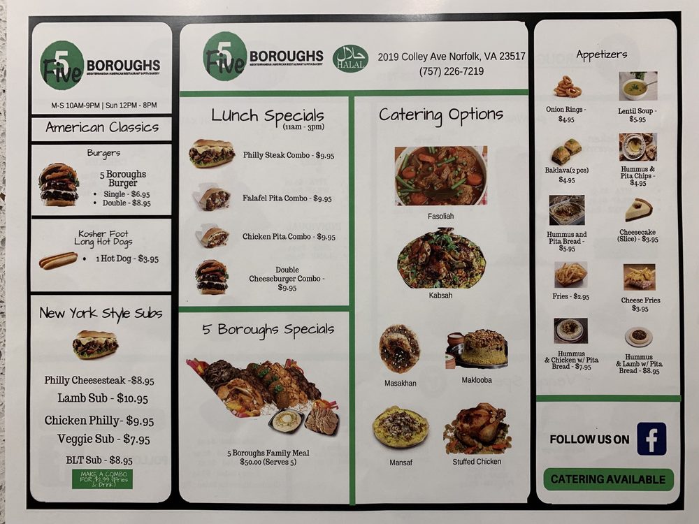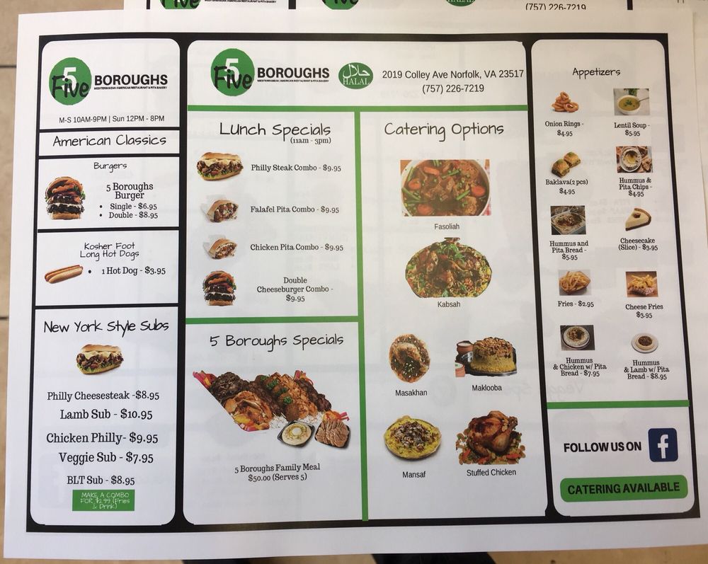 Welcome to Five Boroughs Restaurant, where culinary diversity meets a warm, casual ambiance in Norfolk, VA. Known for its halal pizza offerings, this delightful eatery showcases a menu that tantalizes taste buds with both vegan and vegetarian options, catering to all dietary preferences. Whether you're popping in for a quick lunch or gathering with friends, the inviting atmosphere enhances any dining experience.
